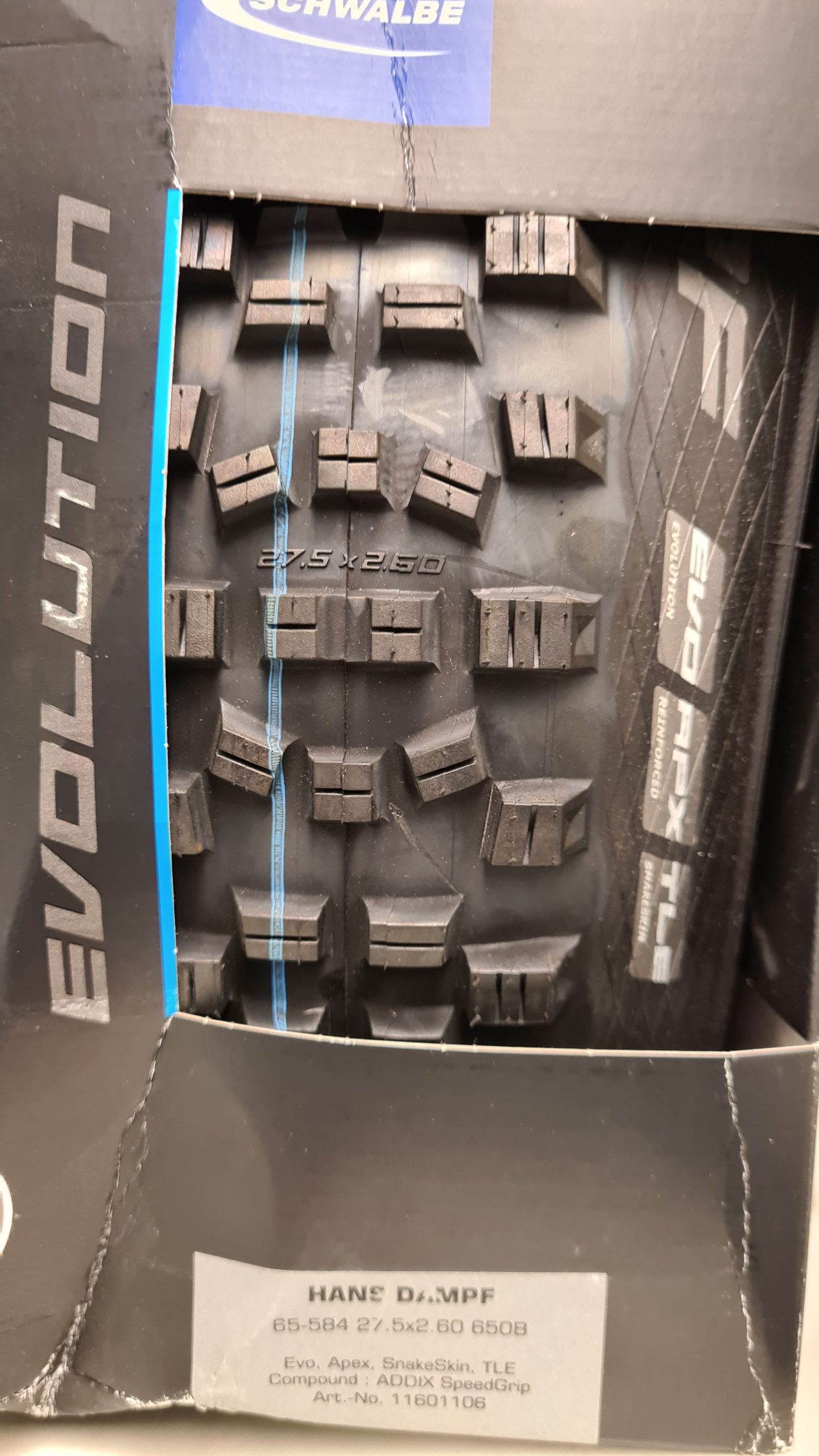 Nieuwe achterband (nog in doos – Schwalbe Hans Dampf 27.5×2.6)
