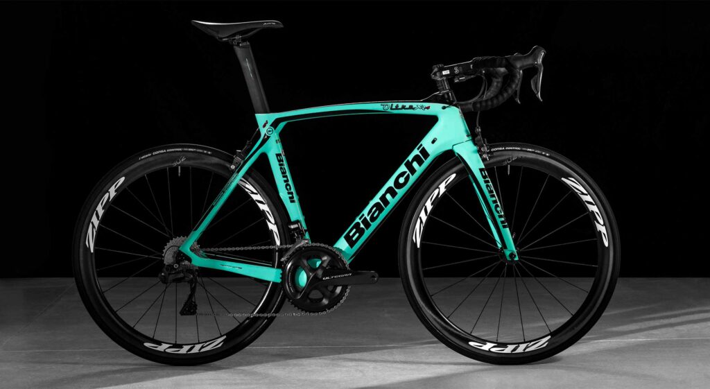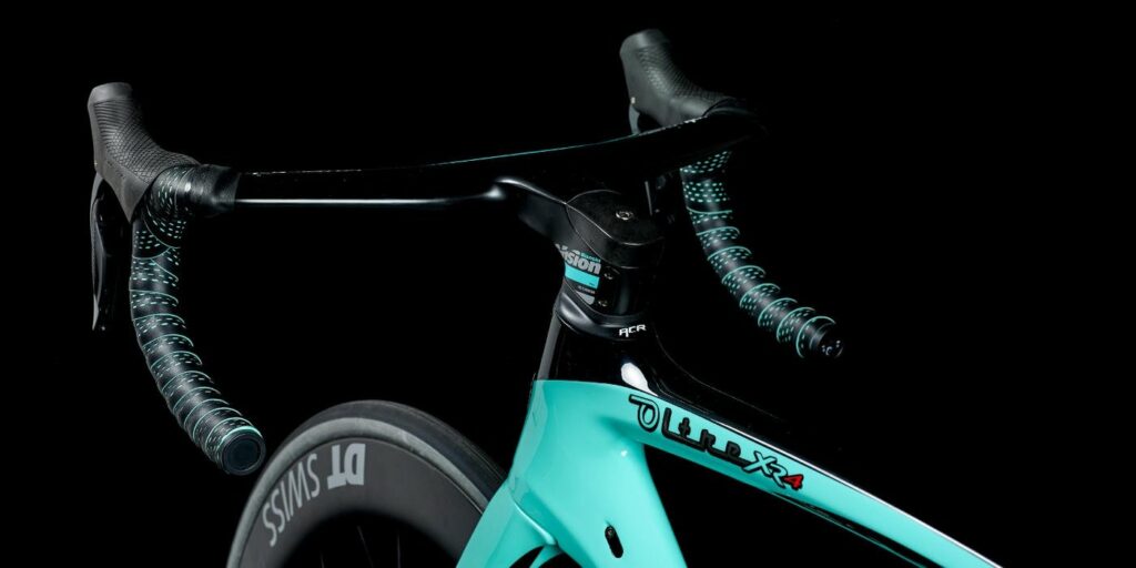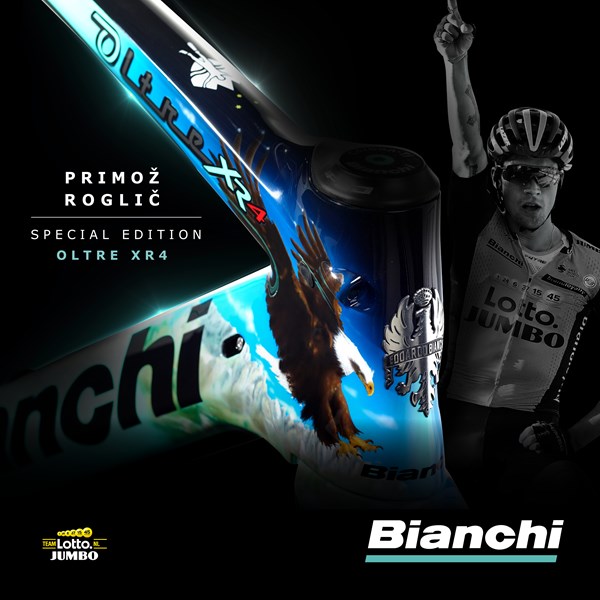 Team JumboVisma fietst sinds 2014 op Bianchi. Speciaal voor het team is de Oltre XR4 ontwikkeld. Het Oltre XR4 Disc frame en de vork zijn ontworpen voor bredere banden. De extra vrije ruimte verbetert comfort en grip. De Bianchi-ingenieurs gebruikten Computational Fluid Dynamic (CFD) om elk aspect van de Oltre te verfijnen en optimaliseren. Aero is everything. Daarnaast wordt ook het nieuwe Metron 5D ACR aerostuur gemonteerd. Met volledig intern lopende kabelgeleiding door het stuur zelf en door de stuurpen – voor de hydraulische remleidingen en de versnellingskabels. De Oltre XR4 Disc is getest en ontwikkeld in samenwerking met World Tour Team Lotto NL-Jumbo.
