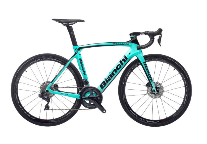 • Vork: Bianchi Full Carbon w/Countervail, 1,5″ geïntegreerde kop, schijfrem, interne bekabeling, flat mount, steekas 12x100mm